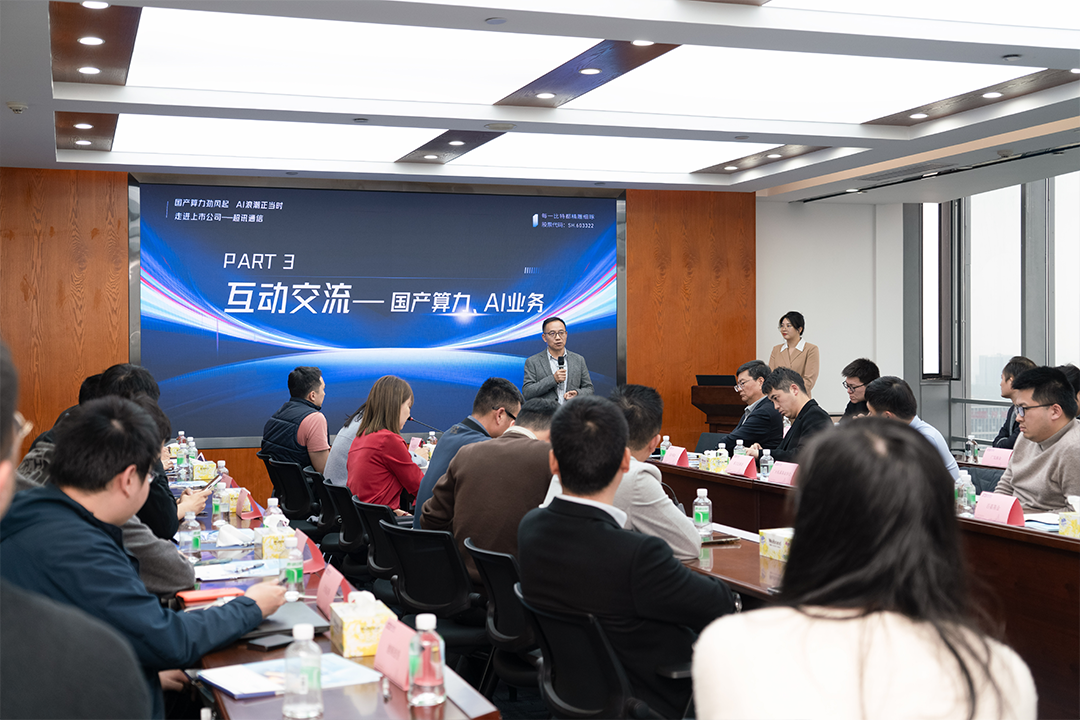 值此行业蓬勃发展之际,2月26日,超讯通信举办的“国产算力劲风起 AI浪潮正当时”走进上市公司交流活动吸引了众多来自协会机构的嘉宾拨冗莅临,共话国产算力行业前沿动态。